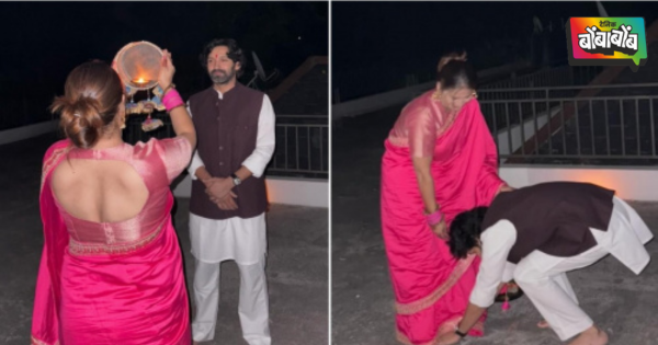 विक्रांत मॅसीने काल रात्रीच्या करवा चौथ सेलिब्रेशनचे अनेक फोटो इंस्टाग्रामवर शेअर केले आहेत. पहिल्या चित्रात त्यांची पत्नी शीतल ठाकूर फिल्टरमधून त्यांच्याकडे पाहत आहे आणि पार्श्वभूमीत चंद्र चमकत आहे. दुसऱ्या छायाचित्रात शीतलने विक्रांतच्या पायाला स्पर्श करून आशीर्वाद घेतले. तिसऱ्या चित्रात अभिनेत्याने पत्नीच्या पायाला स्पर्श केला. शेवटच्या स्लाइडमध्ये, विक्रांत शीतलला पाणी देताना दिसला, त्यानंतर त्याने उपोषण सोडले.