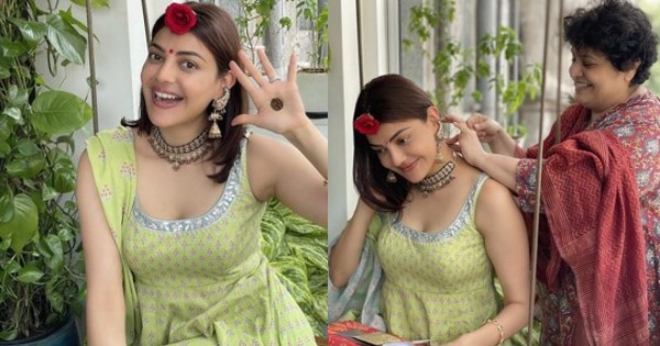 खरं तर, बुधवारी (११ ऑगस्ट) काजल लग्नानंतरची पहिली हरियाली तीज आहे. तिने तीज साजरी करतानाचे काही फोटो सोशल मीडियावर शेअर केले आहेत, ज्यामध्ये ती खूप सुंदर दिसत आहे. या फोटोमध्ये काजल हिरव्या रंगाlच्या सलवार सूटमध्ये दिसत आहे. यासोबतच काजलने तिच्या गळ्यात एक सुंदर चोकर, स्टायलिश कानातले घातले आहेत. त्याचबरोबर तिच्या भांगेत गुलाब लावले आहे. तिच्या हातावर मेहंदी काढली आहे. ती खूपच सुंदर दिसत आहे. (Actress Kajal Aggarwal celebrates her first green tea after marriage)