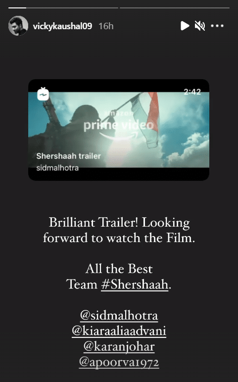 सिद्धार्थ मल्होत्राने कॅप्टन विक्रम बत्रा यांचे संपूर्ण आयुष्य प्रेक्षकांसमोर मांडले आहे. अनेक बॉलिवूड कलाकारांनी या चित्रपटाचा ट्रेलर सोशल मीडियावर शेअर केला आहे आणि चित्रपटाचे कौतुक केले आहे. अक्षय कुमारने ट्विटरवर लिहिले आहे की, “एक रील हीरो एका रिअल हीरोला काय श्रद्धांजली देऊ शकतो. तुमच्या बलिदानाने आमचे जीवन प्रेरित झाले आहे. या शिवाय मी काहीच म्हणू शकत नाही. परमविर चक्र पुरस्कार विजेता कॅप्टन विक्रम बात्रा माझा जन्मदिवस तुमच्यासोबत शेअर करताना मी स्वत:ला खूप भाग्यवान समजत आहे.”