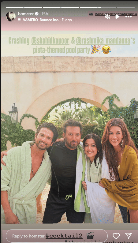 सोशल मीडिया पोस्टमध्ये “कॉकटेल २” मधील फोटो शेअर केले गेले होते, ज्यामध्ये रश्मिका मंदान्ना, शाहिद कपूर आणि क्रिती सेनन पूल पार्टी करताना दिसत आहेत. हे फोटो सोशल मीडियावर चर्चेचा विषय बनले आहेत.