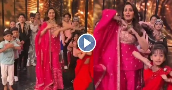 माधुरीने तिच्या अधिकृत इंस्टाग्राम अकाऊंटवरून एक व्हिडिओ शेअर केला आहे. या व्हिडिओमध्ये ती ‘डान्स दीवाने ३’ या शोमधील लहान स्पर्धकांसोबत डान्स करताना दिसत आहे. सगळेजण इंस्टाग्रामवरील एका ट्रेंडिंग म्युझिकवर डान्स करताना दिसत आहेत. या व्हिडिओमध्ये माधुरीने लाल रंगाचा ड्रेस घातलेला दिसत आहे. या ड्रेसवर तिने खूप सुंदर ज्वेलरी घातलेली दिसत आहे. या लूकध्येम ती खूप सुंदर दिसत आहे. याआधी देखील तिने या ड्रेसवरील फोटो आणि व्हिडिओ शेअर केले होते.