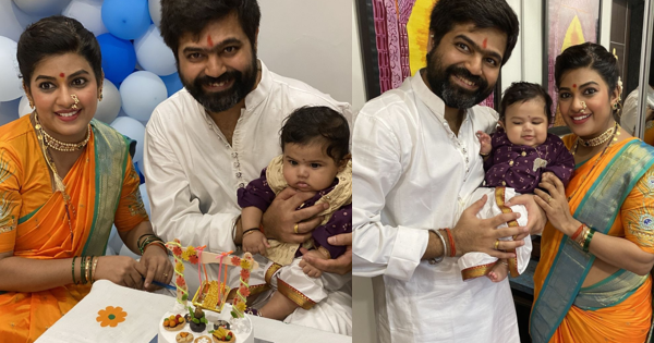 धनश्रीच्या बाळाचे नुकतेच बारसे झाले. या बारशाचे काही फोटो धनश्रीने इंस्टाग्रामवर पोस्ट केले आहेत. धनश्री आणि तिचा नवरा दुर्गेशने त्यांच्या बाळाचे नाव ‘कबीर’ ठेवले आहे. ही पोस्ट शेअर करताना तिने लिहिले, “बाळाचे बारसे झाले आहे आणि नाव ठेवले आहे ‘कबीर’…कुरररर!” धनश्रीने या पोस्टमध्ये तिच्या बाळाचे फोटो देखील शेअर केले आहे. धनश्रीने फोटो शेअर केल्यानंतर तिच्या फोटोंवर चाहत्यांकडून शुभेच्छांचा वर्षाव होत आहे.