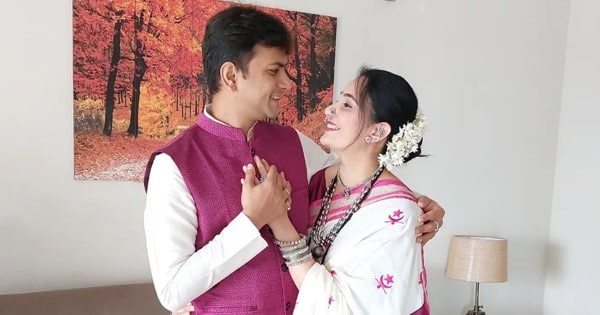 सईने अधिकृत इंस्टाग्राम अकाऊंटवरून काही फोटो शेअर केले आहेत. या फोटोमध्ये तुम्ही पाहू शकता की, तिने तिच्या पतीसोबतचे खूप सुंदर फोटो शेअर केले आहेत. फोटोमध्ये तिने पांढऱ्या रंगाची साडी नेसली आहे. या साडीतील पदराचा रंग जांभळा आहे. यासोबत तिच्या पतीने देखील पांढऱ्या रंगाचा कुर्ता आणि धोती घातली आहे. तसेच जांभळ्या रंगाचे जॅकेट घातले आहे. या फोटोमध्ये सई खूपच सुंदर दिसत आहे. तिने ऑक्साईड ज्वेलरी घातली आहे. गळ्यात मंगळसूत्र घातले आहे. तसेच कपाळी चंद्राची कोर लावली आहे. तसेच केसात गुलाबाचे फुल घातले आहे. या लूकमध्ये ती खूपच सुंदर दिसत आहे. त्यांनी त्यांच्या बाप्पासोबत फोटो शेअर केले आहेत. (Marathi actress sai lokur share a photo with her husband)