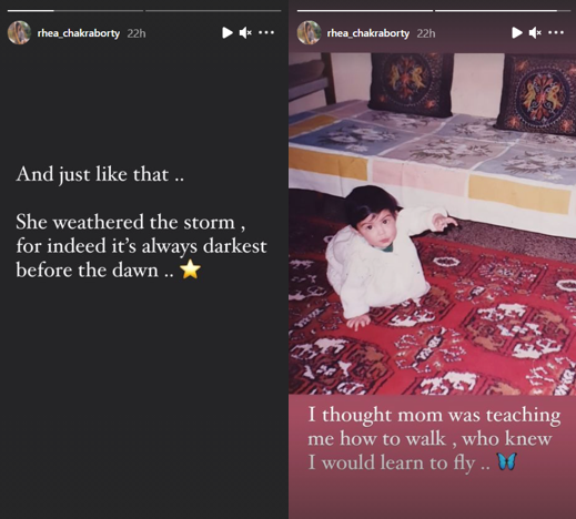 रियाने तिच्या पोस्टमध्ये लिहिले की, “आणि असेच तिने वादळांचा सामना केला. कारण खरंच नेहमी सकाळ होण्याआधी रात्रच असते.” तिने पोस्ट केलेल्या तिच्या लहानपणाच्या फोटोसोबत लिहिले, “मला वाटते की आई मला चालायला शिकवत होती. मात्र कोणाला माहित होते की, मी उडायला पण शिकेल.”