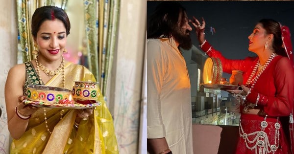 चित्रपटसृष्टीतील अनेक अभिनेत्रींनी करवाचौथ हा सण मोठ्या उत्साहात साजरा केला आहे. यामध्ये भोजपुरी अभिनेत्री मोनालिसा आणि हरियाणवी अभिनेत्री सपना चौधरीचाही समावेश आहे. यादरम्यानचे फोटो त्यांनी सोशल मीडियावर चाहत्यांसोबत शेअर केले आहेत.